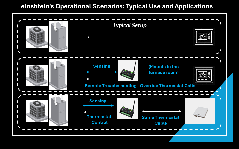 Should the need arise to replace or upgrade your customer’s current thermostat, the AI-Powered einshtein Thermostat offers a unique advantage. Its internal Smart Thermostat feature can be activated at NO ADDITIONAL COST, aside from the purchase of einshtein Sensors. This means you can enjoy the benefits of this cutting-edge technology without the burden of extra expenses.